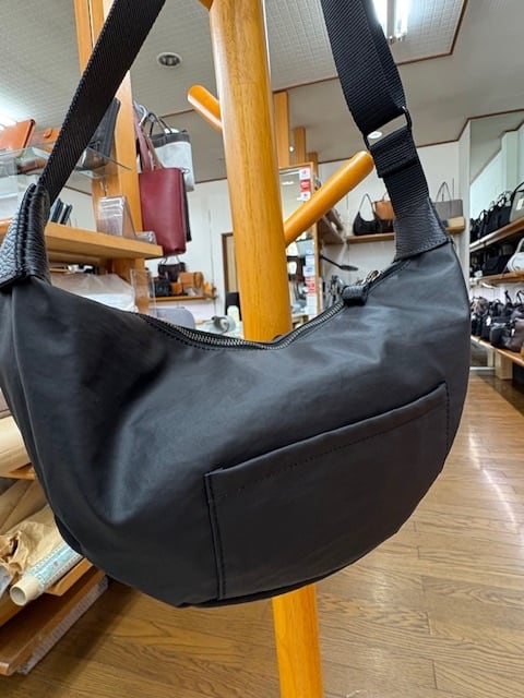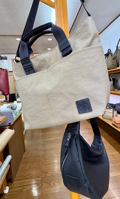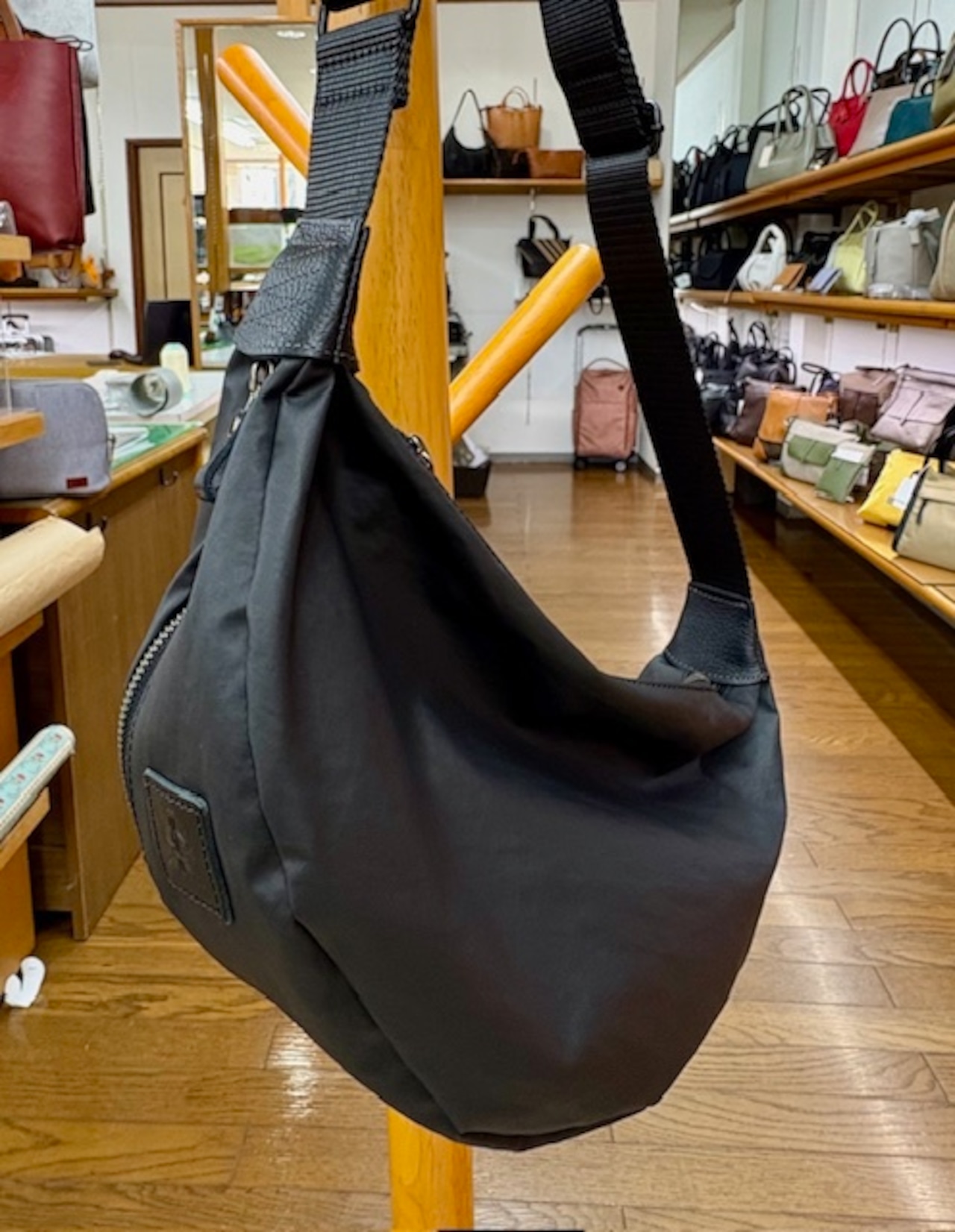 ポリウレタンの防水地に牛革付属のボディ&ショルダーバック