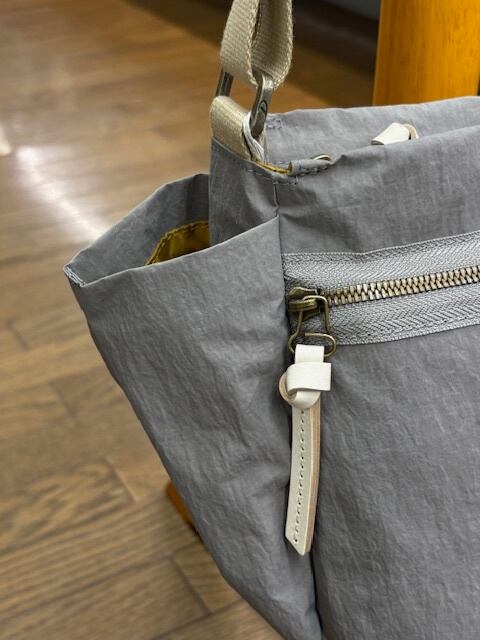 100%リサイクルの国産ナイロンに牛革付属
