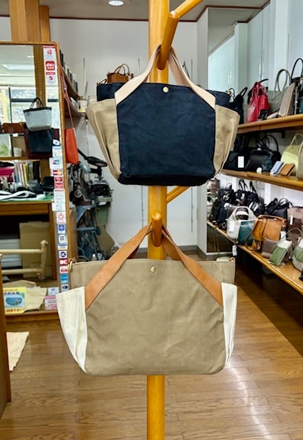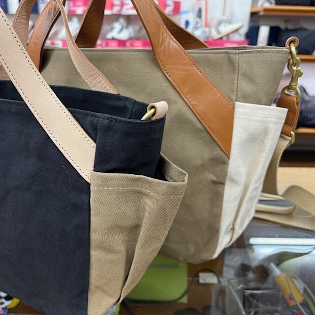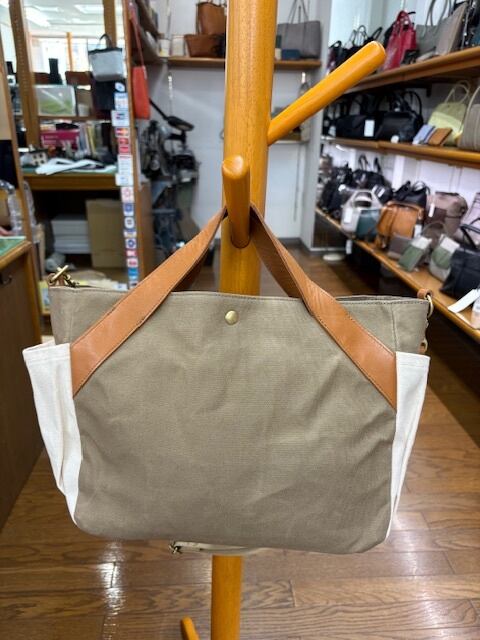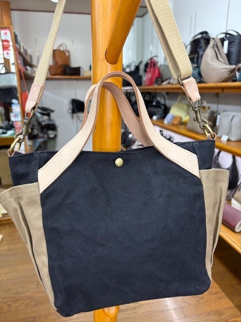 コットンに牛革付属の2WAYBAG