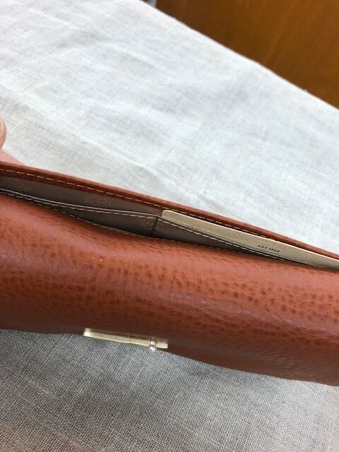 エイジングの増すレザーにクラフト調のブローチが相まって使うほどにアンティークのような趣を感じさせます。