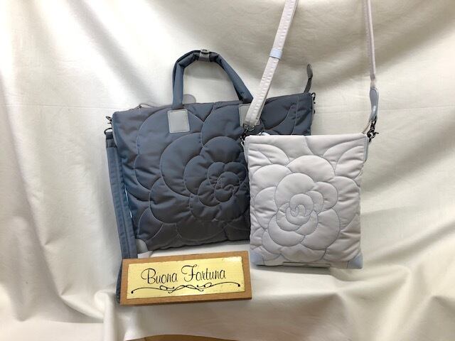 ナイロン素材は玉虫色 光沢があり通年お持ちいただけそうなBAGです