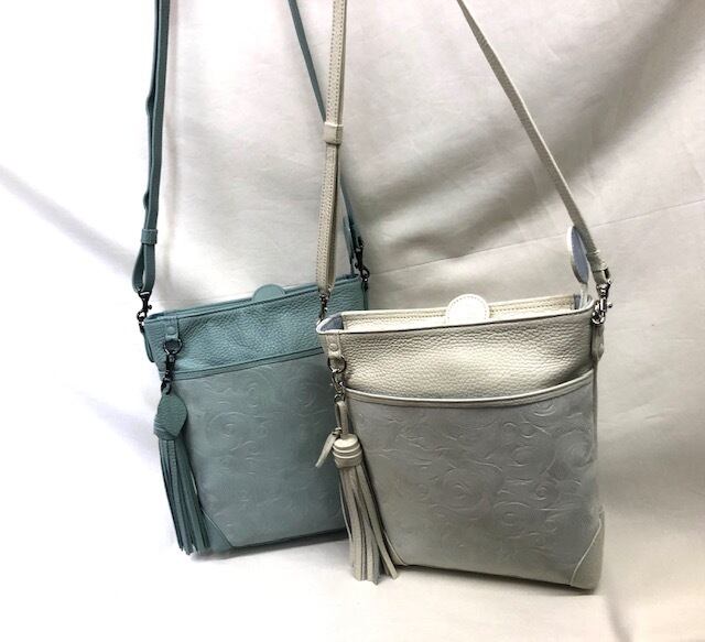 スパイラル模様の型押しを施したイタリア製牛革を使用